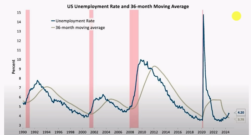 역사적으로 실업률이 36개월 이평선을 이탈하는 순간 쭉 상승했다.