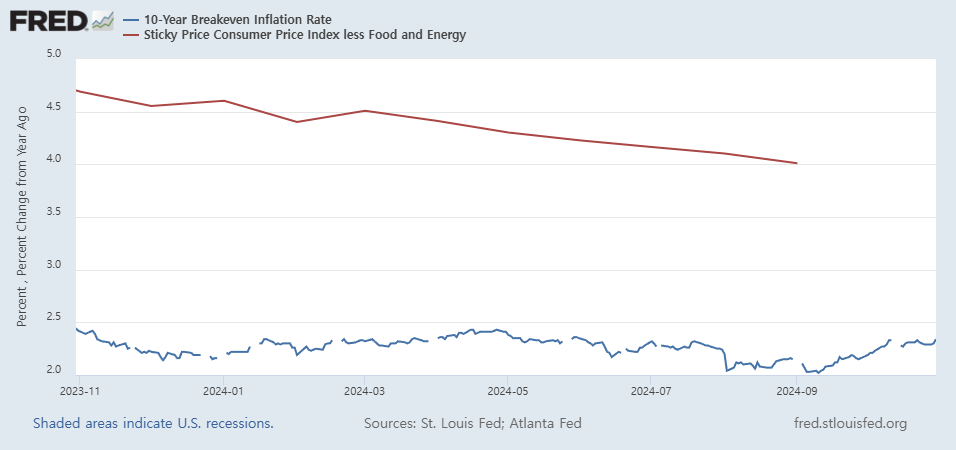 sticky 인플레이션은 감소하고 있다.(후행지표)