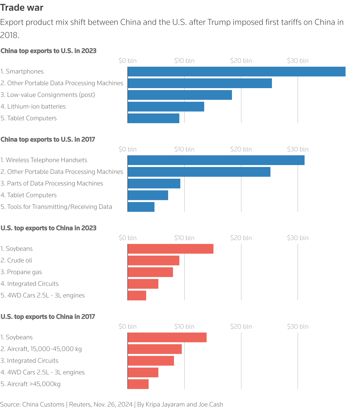 - 중국도 미국산 농산물, 자동차, 반도체 등에 대한 보복 관세 시행.