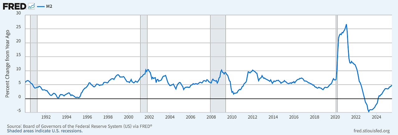 그리고 순 유동성과 비슷하게, M2 통화량도 반등하고 있어요. 이는 광의 통화 지표로서, 소비 및 투자 여력이 확대되고 있음을 보여줘요.